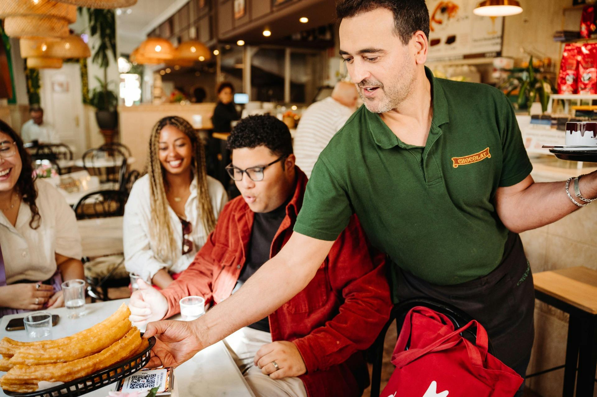 Começa o teu dia com um doce como manda a tradição, ao saborear churros com chocolate num café pitoresco do bairro, um ritual matinal adorado por muitos madrilenos.